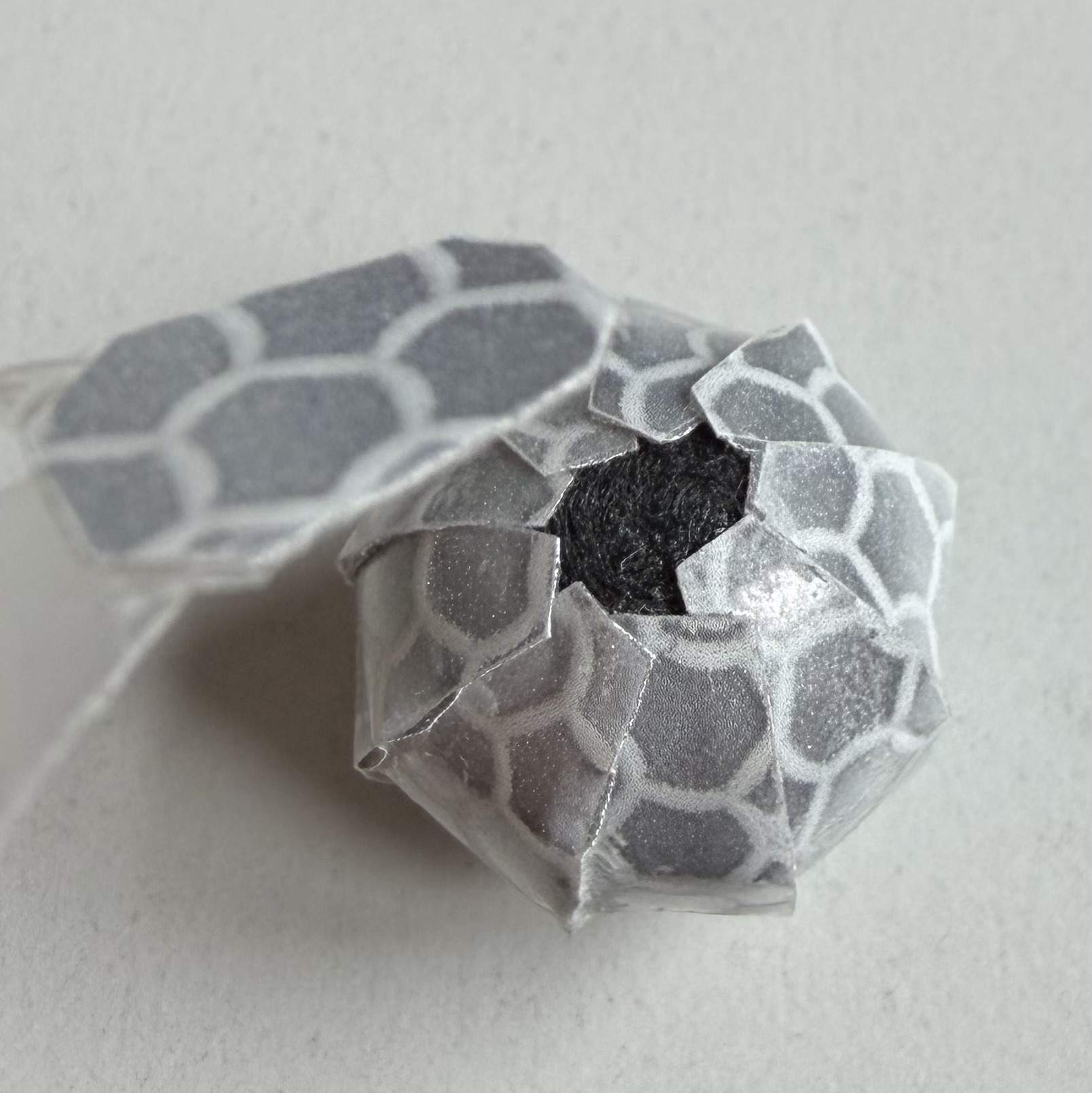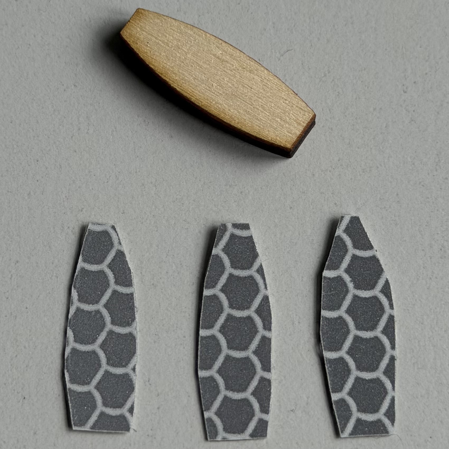 Cut the tape using the template. The exact shape is not critical, but one end should be narrower. Approximately nine segments are required.