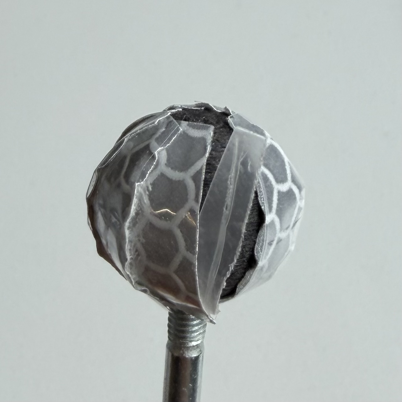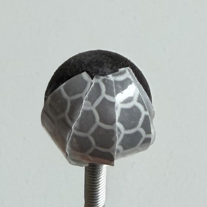 The tape cannot be wrapped around the marker in one piece. Apply multiple segments in a globe-like pattern.